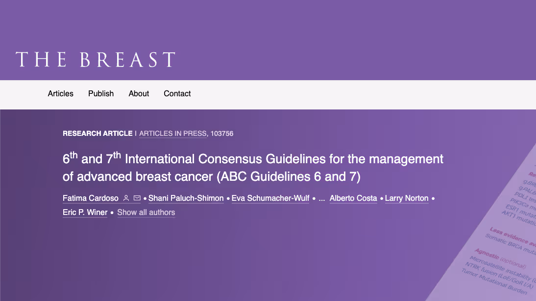 The Advanced Breast Cancer International Consensus Conference has established itself as a major international breast cancer conference. Its primary aim is the development of international consensus guidelines for the management of ABC.